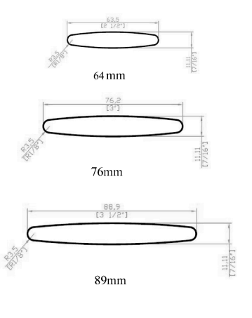 64mm, 76mm, 89mm